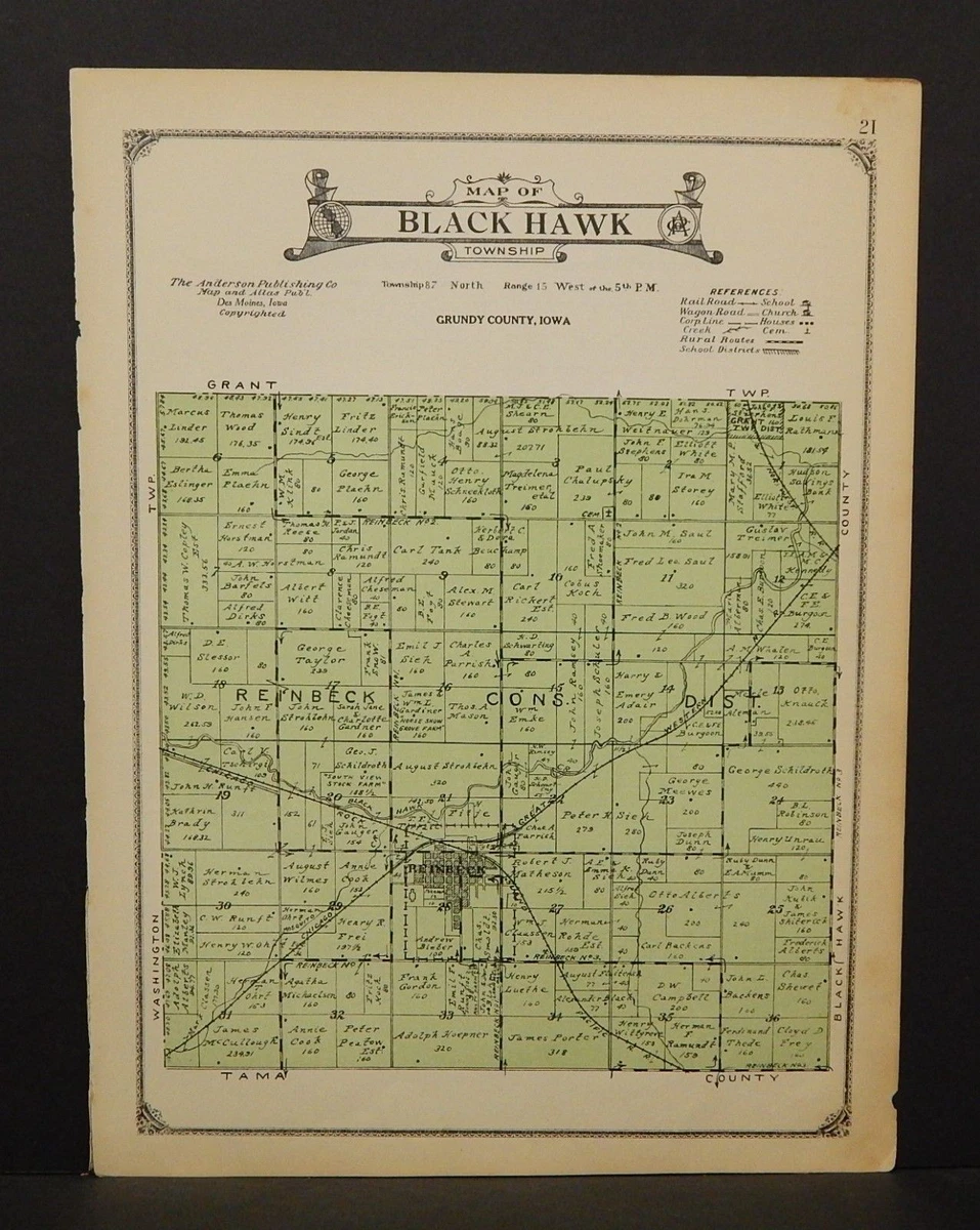Iowa Grundy County Map Black Hawk Township 1924 W14#97 | eBay