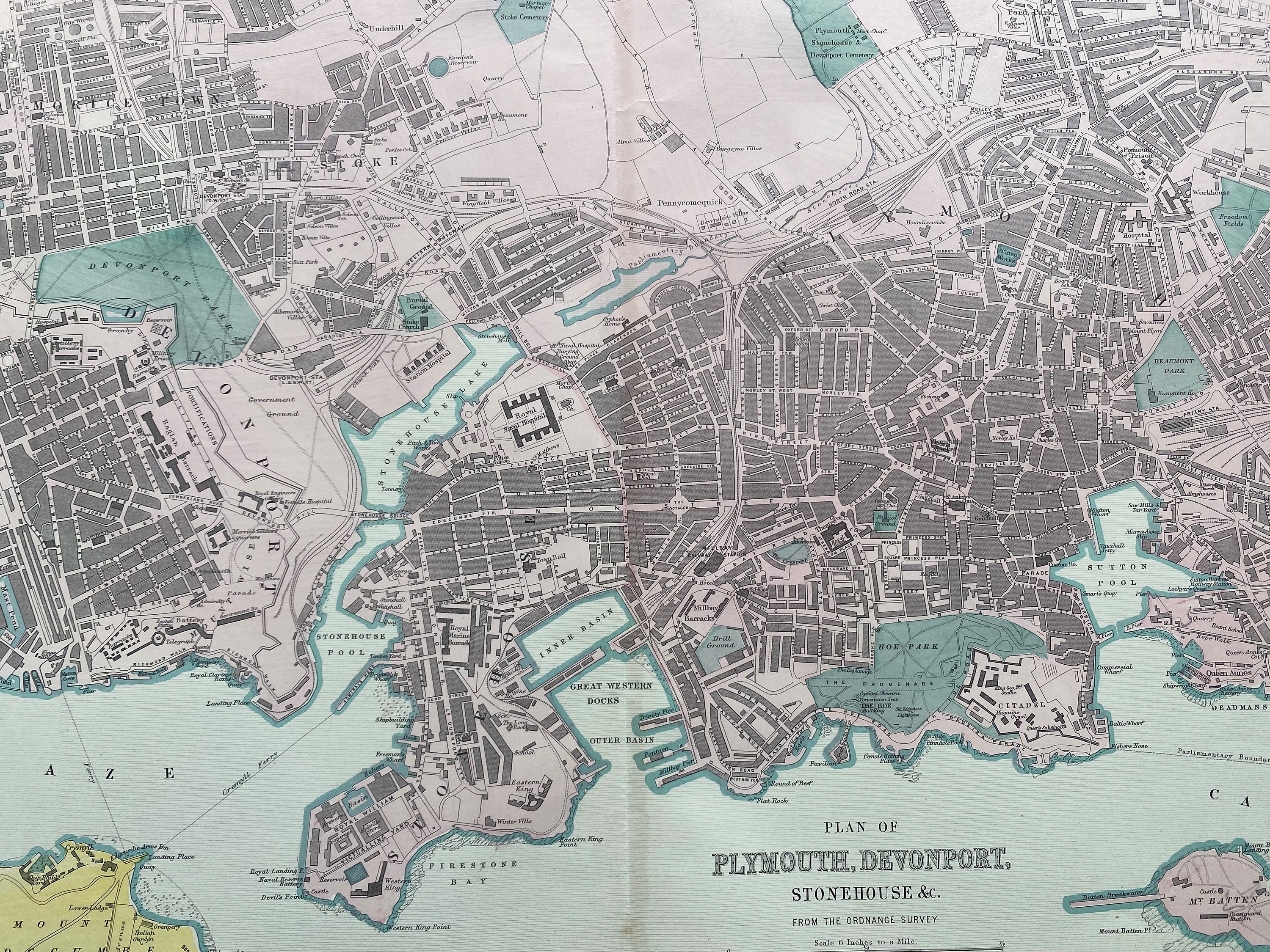 1902 Plymouth, Devonport, Stonehouse Original Antique Map