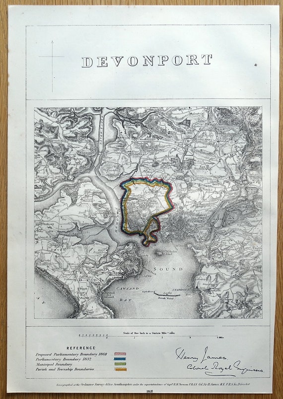 Antique Map DEVONPORT, PLYMOUTH, DEVON, Saltash, Plymstock, St